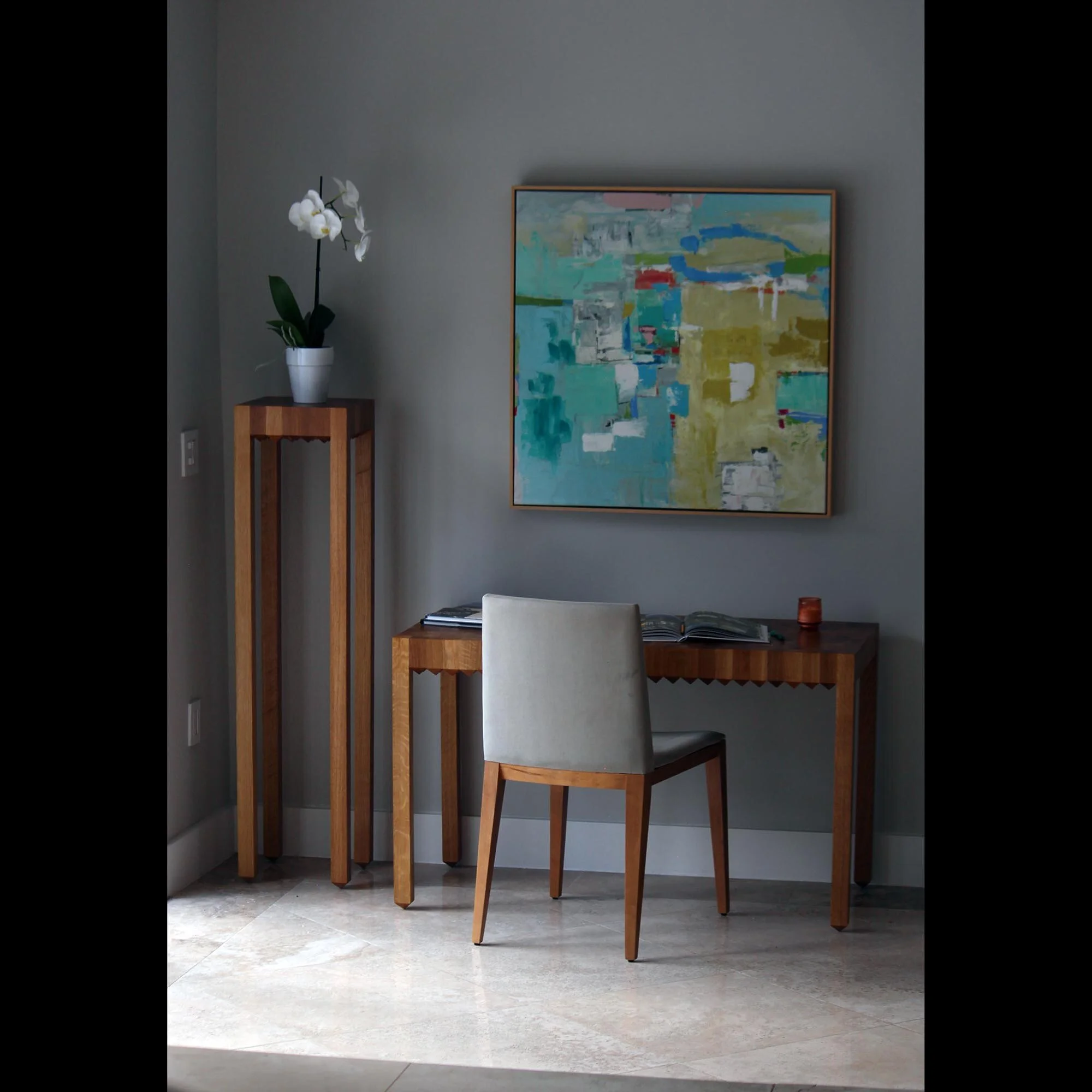 Our Mira de Aire collection was inspired by stalactites. Its design is both elegant and cozy as geometric lines meet warm white oak. The butcher’s block top is familiar and versatile, while the peaks underneath add mystery and a wisp of humor.
